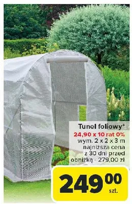 Cena produktu r贸偶ni si臋 w zale偶no艣ci od wybranego sklepu. Niestety nie posiadamy danych o aktualnych promocjach, jednak w艣r贸d archiwalnych ofert Tunel foliowy 2 x 2 x 3 m kosztuje od 249 z艂 do 399 z艂.