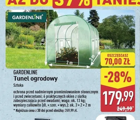Cena produktu r贸偶ni si臋 w zale偶no艣ci od wybranego sklepu. Produkt Tunel ogrodowy 3 x 2 x 2 m GARDEN LINE mo偶esz kupi膰 w promocji ju偶 od 1,79 z艂. Najta艅sza oferta, jak膮 mamy w naszej bazie jest z sieci Auchan. Tunel ogrodowy 3 x 2 x 2 m GARDEN LINE kosztuje aktualnie 1,79 z艂. Zobacz ofert臋
