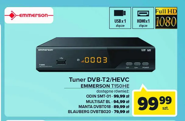 Ile kosztuje Tuner dvb-t2 h.265 hevc t150he Emmerson?