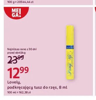 Cena produktu r贸偶ni si臋 w zale偶no艣ci od wybranego sklepu. Niestety nie posiadamy danych o aktualnych promocjach, jednak w艣r贸d archiwalnych ofert Tusz do rz臋s czarny Lovely curling pump up kosztuje od 12,99 z艂.