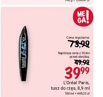 Cena produktu r贸偶ni si臋 w zale偶no艣ci od wybranego sklepu. Produkt Tusz do rz臋s oversized eye L'oreal bambi eye false lash mo偶esz kupi膰 w promocji ju偶 od 44,99 z艂. Najta艅sza oferta, jak膮 mamy w naszej bazie jest z sieci Drogerie Natura. Tusz do rz臋s oversized eye L'oreal bambi eye false lash kosztuje aktualnie 44,99 z艂. Zobacz ofert臋