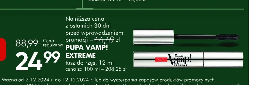 Zastanawiasz si臋, gdzie kupi膰 i ile kosztuje produkt Tusz do rz臋s PUPA VAMP EXTREME? Regularnie sprawdzamy, czy jest promocja na ten produkt w Biedronka, Lidl, Kaufland, Auchan, Netto, Makro i innych sklepach. Aktualnie posiadamy 2 oferty promocyjne na ten produkt. Ceny zaczynaj膮 si臋 od 19,99z艂!