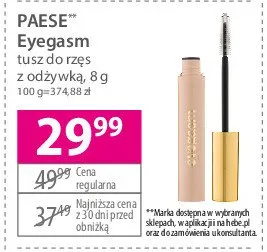 Cena produktu różni się w zależności od wybranego sklepu. Niestety nie posiadamy danych o aktualnych promocjach, jednak wśród archiwalnych ofert Tusz do rzęs z odżywką PAESE EYEGASM kosztuje od 20,99 zł do 49,99 zł.