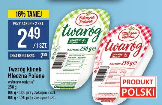 Twaróg klinek półtłusty Mleczna polana promocje w sklepach - znajdź ofertę dla siebie!