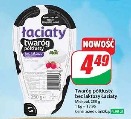 Twaróg półtłusty bez laktozy Łaciaty promocje w sklepach - znajdź ofertę dla siebie!