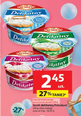 Cena produktu r贸偶ni si臋 w zale偶no艣ci od wybranego sklepu. Niestety nie posiadamy danych o aktualnych promocjach, jednak w艣r贸d archiwalnych ofert Twaro偶ek delikatny naturalny President kosztuje od 2,45 z艂 do 3,49 z艂.