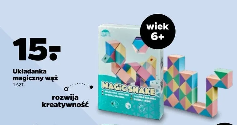 Cena produktu różni się w zależności od wybranego sklepu. Niestety nie posiadamy danych o aktualnych promocjach, jednak wśród archiwalnych ofert Układanka magiczny wąż kosztuje od 15 zł.