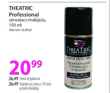 Cena produktu r贸偶ni si臋 w zale偶no艣ci od wybranego sklepu. Niestety nie posiadamy danych o aktualnych promocjach, jednak w艣r贸d archiwalnych ofert Utrwalacz do makija偶u w sprayu Theatric professional kosztuje od 14,99 z艂 do 20,99 z艂.