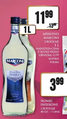 Cena produktu r贸偶ni si臋 w zale偶no艣ci od wybranego sklepu. Niestety nie posiadamy danych o aktualnych promocjach, jednak w艣r贸d archiwalnych ofert Vermouth MARCONI PEACH kosztuje od 11,99 z艂.