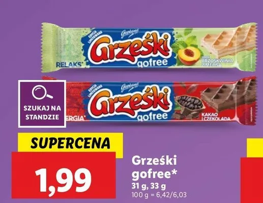 Przegl膮daj oferty promocyjne na produkt Wafel brzoskwinia z melis膮 Grze艣ki gofree