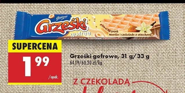 Gdzie mo偶na tanio kupi膰 produkt Wafel waniliowo-czekoladowy z orzechami Grze艣ki gofree?