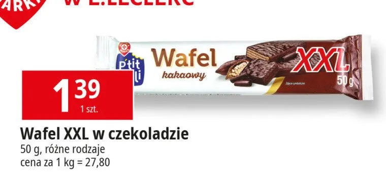 Przegl膮daj oferty promocyjne na produkt Wafelek kakaowy w czekoladzie xxl Wiod膮ca marka p'tit deli