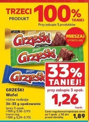 Przegl膮daj oferty promocyjne na produkt Wafelek orzechowy w czekoladzie mlecznej Grze艣ki
