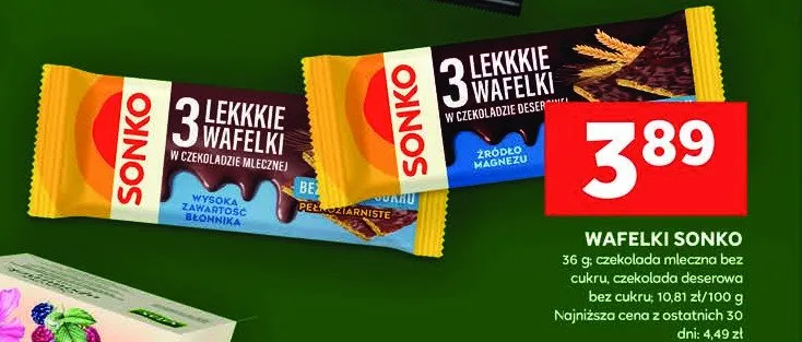 Przegl膮daj podobne oferty promocyjne do Wafelki pe艂noziarniste w czekoladzie mlecznej Sonko lekkkie wafelki!