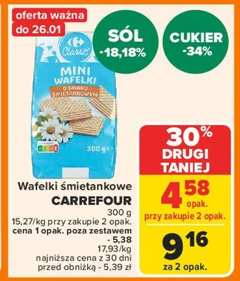 Ile kosztuje Wafelki 艣mietankowe Carrefour?
