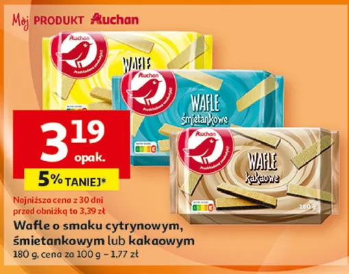 Gdzie mo偶na tanio kupi膰 produkt Wafle kakaowe Auchan?