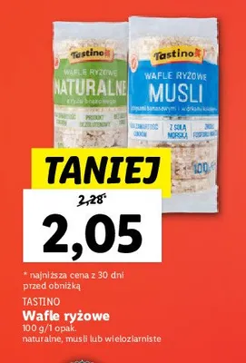 Cena produktu różni się w zależności od wybranego sklepu. Niestety nie posiadamy danych o aktualnych promocjach, jednak wśród archiwalnych ofert Wafle ryżowe z solą morską Tastino kosztuje od 1,85 zł do 2,05 zł.