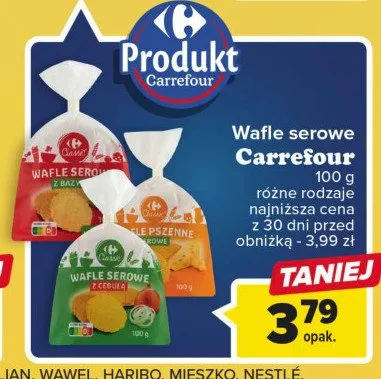 Gdzie mo偶na tanio kupi膰 produkt Wafle serowe z bazyli膮 Carrefour?