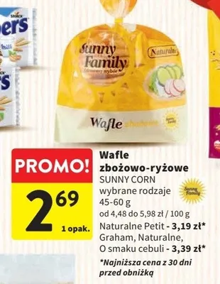 Gdzie można tanio kupić produkt Wafle zbożowo-ryżowe cebulowe Sunny family?