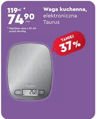 Cena produktu r贸偶ni si臋 w zale偶no艣ci od wybranego sklepu. Niestety nie posiadamy danych o aktualnych promocjach, jednak w艣r贸d archiwalnych ofert Waga kuchenna easy inox Taurus kosztuje od 74,9 z艂.