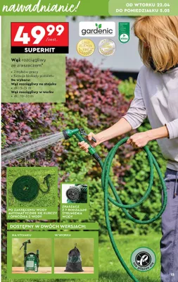 Przeglądaj podobne oferty promocyjne do Wąż ogrodowy rozciągliwy ze zraszaczem Gardenic!