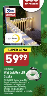 Cena produktu różni się w zależności od wybranego sklepu. Niestety nie posiadamy danych o aktualnych promocjach, jednak wśród archiwalnych ofert Wąż świetlny 200 led 10 m LIGHTZONE kosztuje od 59,99 zł.