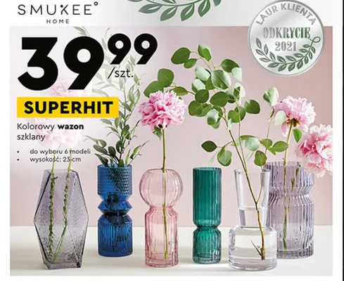 Przegl膮daj podobne oferty promocyjne do Wazon kolorowy szklany 23 cm Smukee home!