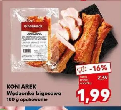 Zastanawiasz si臋, gdzie kupi膰 i ile kosztuje produkt W臋dzonka bigosowa Koniarek? Regularnie sprawdzamy, czy jest promocja na ten produkt w Biedronka, Lidl, Kaufland, Auchan, Netto, Makro i innych sklepach. Aktualnie posiadamy 1 ofert臋 promocyjn膮 na ten produkt. Ceny zaczynaj膮 si臋 od 1,99z艂!