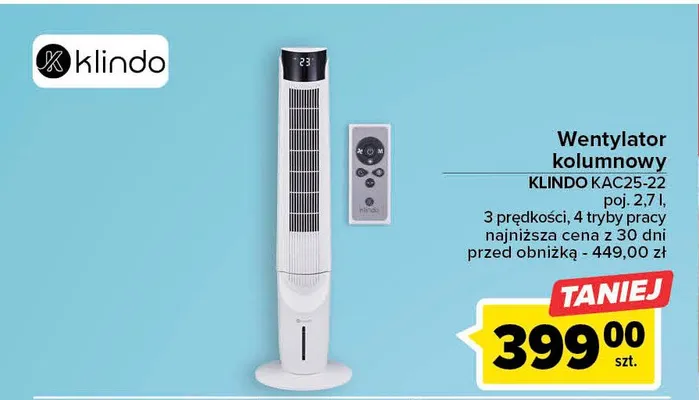 Przegl膮daj podobne oferty promocyjne do Wentylator kolumnowy kac25-22 Klindo!