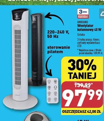 Gdzie mo偶na tanio kupi膰 produkt Wentylator kolumnowy z pilotem 40w AMBIANO?