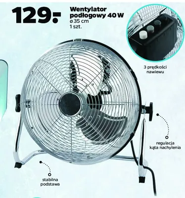 Zastanawiasz si臋, gdzie kupi膰 i ile kosztuje produkt Wentylator pod艂ogowy 40 w? Regularnie sprawdzamy, czy jest promocja na ten produkt w Biedronka, Lidl, Kaufland, Auchan, Netto, Makro i innych sklepach. Aktualnie nie posiadamy ofert promocyjnych na ten produkt.