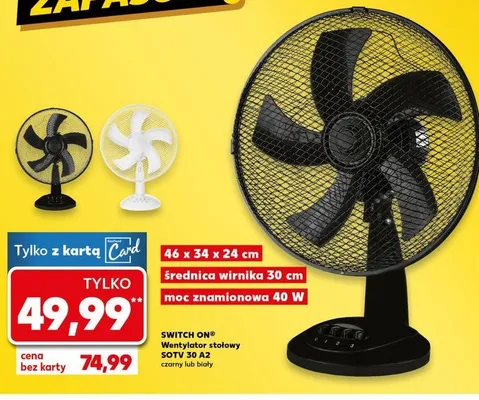 Ile kosztuje Wentylator sto艂owy 30 cm 40 w czarny Switch on?