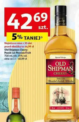 Cena produktu r贸偶ni si臋 w zale偶no艣ci od wybranego sklepu. Niestety nie posiadamy danych o aktualnych promocjach, jednak w艣r贸d archiwalnych ofert Whisky Old shipman cherry kosztuje od 42,69 z艂.