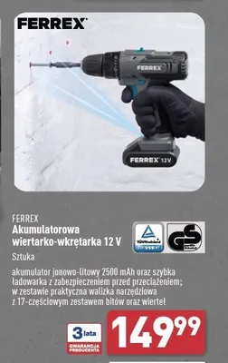 Cena produktu r贸偶ni si臋 w zale偶no艣ci od wybranego sklepu. Niestety nie posiadamy danych o aktualnych promocjach, jednak w艣r贸d archiwalnych ofert Wiertarko-wkr臋tarka 12 v Ferrex kosztuje od 119 z艂 do 149,99 z艂.