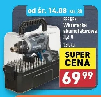 Cena produktu r贸偶ni si臋 w zale偶no艣ci od wybranego sklepu. Niestety nie posiadamy danych o aktualnych promocjach, jednak w艣r贸d archiwalnych ofert Wiertarko-wkr臋tarka akumulatorowa Ferrex kosztuje od 69,99 z艂 do 199 z艂.