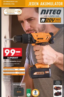 Przegl膮daj podobne oferty promocyjne do Wiertarko-wkr臋tarka udarowa 20 v Niteo tools!