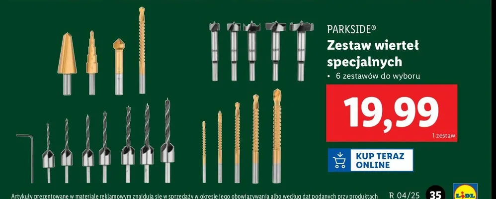Zastanawiasz si臋, gdzie kupi膰 i ile kosztuje produkt Wiert艂a do czop贸w Parkside? Regularnie sprawdzamy, czy jest promocja na ten produkt w Biedronka, Lidl, Kaufland, Auchan, Netto, Makro i innych sklepach. Aktualnie nie posiadamy ofert promocyjnych na ten produkt.