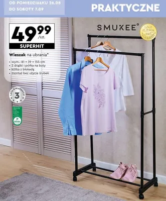 Zastanawiasz si臋, gdzie kupi膰 i ile kosztuje produkt Wieszak na ubrania 81 x 39 x 155 cm Smukee? Regularnie sprawdzamy, czy jest promocja na ten produkt w Biedronka, Lidl, Kaufland, Auchan, Netto, Makro i innych sklepach. Aktualnie nie posiadamy ofert promocyjnych na ten produkt.