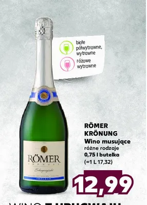 Cena produktu r贸偶ni si臋 w zale偶no艣ci od wybranego sklepu. Produkt Wino bia艂e wytrawne ROMER KRONUNG mo偶esz kupi膰 w promocji ju偶 od 17,99 z艂 do 34,99 z艂. Najta艅sza oferta, jak膮 mamy w naszej bazie jest z sieci Stokrotka. Wino bia艂e wytrawne ROMER KRONUNG kosztuje aktualnie 17,99 z艂. Zobacz ofert臋