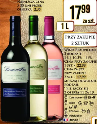 Przeglądaj oferty promocyjne na produkt Wino różowe półsłodkie Beauvillon