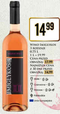 Przeglądaj podobne oferty promocyjne do Wino rózowe półsłodkie Imiglykos!