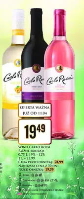 Cena produktu r贸偶ni si臋 w zale偶no艣ci od wybranego sklepu. Niestety nie posiadamy danych o aktualnych promocjach, jednak w艣r贸d archiwalnych ofert Wino s艂odkie Carlo rossi pink moscato kosztuje od 19,49 z艂.