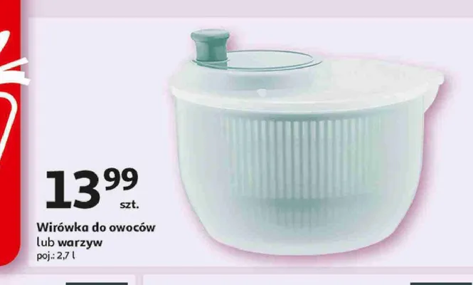 Cena produktu r贸偶ni si臋 w zale偶no艣ci od wybranego sklepu. Niestety nie posiadamy danych o aktualnych promocjach, jednak w艣r贸d archiwalnych ofert Wir贸wka do owoc贸w lub warzyw 2.7 l kosztuje od 13,99 z艂.