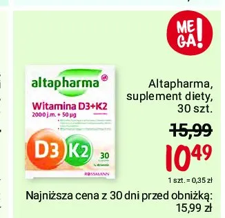 Ile kosztuje Witaminy d3 + k2 Altapharma?