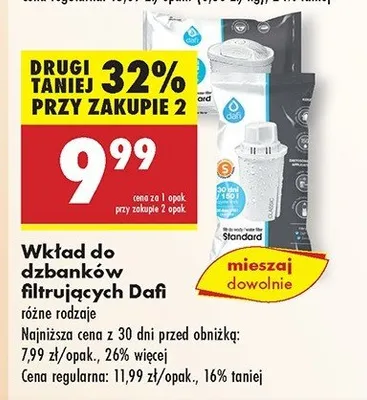 Cena produktu r贸偶ni si臋 w zale偶no艣ci od wybranego sklepu. Niestety nie posiadamy danych o aktualnych promocjach, jednak w艣r贸d archiwalnych ofert Wk艂ad filtruj膮cy standard Dafi kosztuje od 9,99 z艂 do 11,99 z艂.