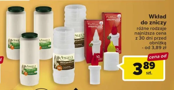 Cena produktu r贸偶ni si臋 w zale偶no艣ci od wybranego sklepu. Niestety nie posiadamy danych o aktualnych promocjach, jednak w艣r贸d archiwalnych ofert Wk艂ad olejowy 8 dni Angela kosztuje od 1,49 z艂 do 12,99 z艂.