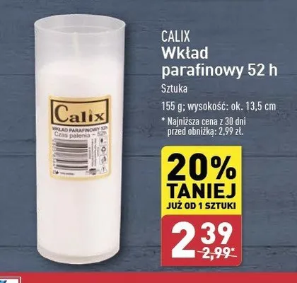 Ile kosztuje Wk艂ad olejowy do znicza 52 h 180 g Calix?