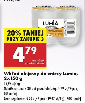 Cena produktu r贸偶ni si臋 w zale偶no艣ci od wybranego sklepu. Niestety nie posiadamy danych o aktualnych promocjach, jednak w艣r贸d archiwalnych ofert Wk艂ad olejowy do zniczy Lumia kosztuje od 4,79 z艂 do 4,99 z艂.