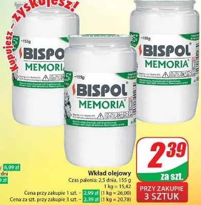 Ile kosztuje Wk艂ad olejowy memoria 60 h Bispol?
