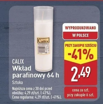 Ile kosztuje Wk艂ad parafinowy do znicza 64h Calix?